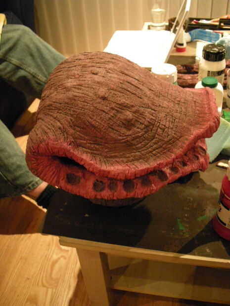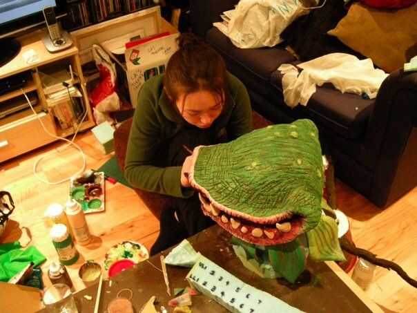 Aquí tiene una marioneta de mano hice un par de años para una compañía de entretenimiento en el Reino Unido, principalmente hizo de espuma, cubierto le un poco de látex, pintura acrílica y PVA. Quería hacer los dientes con materiales tenía por ahí en el barato usé algunos izquierda sobre el tablero de la espuma, pegado en capas y tallado hacia fuera las formas de los dientes, pintado y cubierto con PVA para darle un poco de brillo. Fue realmente muy divertido para hacer!