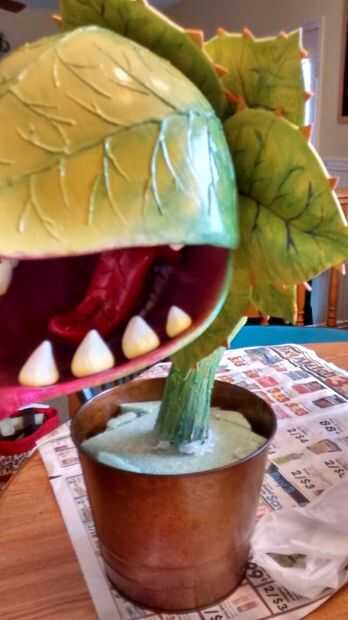 Decidí hacer mi propio traje de este año y decidí que me gustaría ir como Audrey 2 aka la madre verde media desde el espacio exterior!No pude encontrar ningún ejemplo online para ir por así que decidí hacerlo yo mismo que mucho ensayo y error - a con
