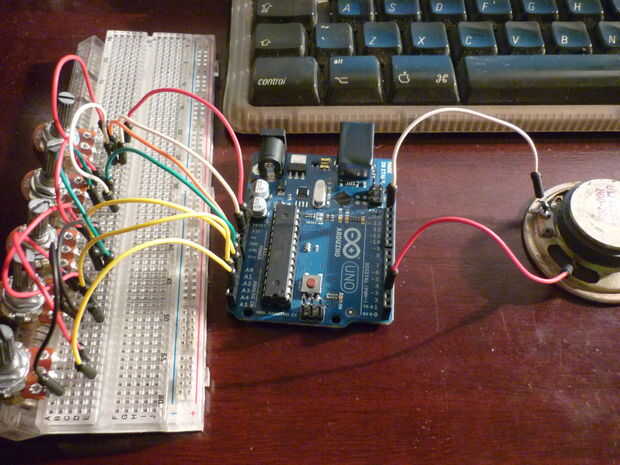 Hecho por ISGK instrumentoshttps://github.com/risgk/digital-Synth-vra8-xConceptoExperimental sintetizador para Arduino UnoCaracterísticasMonophonic sintetizador (o módulo de sonido MIDI)Serial MIDI en (38400 bps), tasa de salida (Pin 6), de Audio PWM