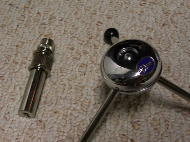 -Desatornille el vástago de desplazamiento de la base de trípode