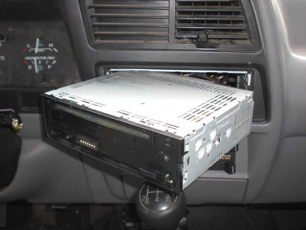 Probar los altavoces y radio antes de poner la radio detrás. Si todo funciona, vaya al paso 6. Si tienes problemas, compruebe el diagrama de cableado de la radio, luego Compruebe todas las conexiones.