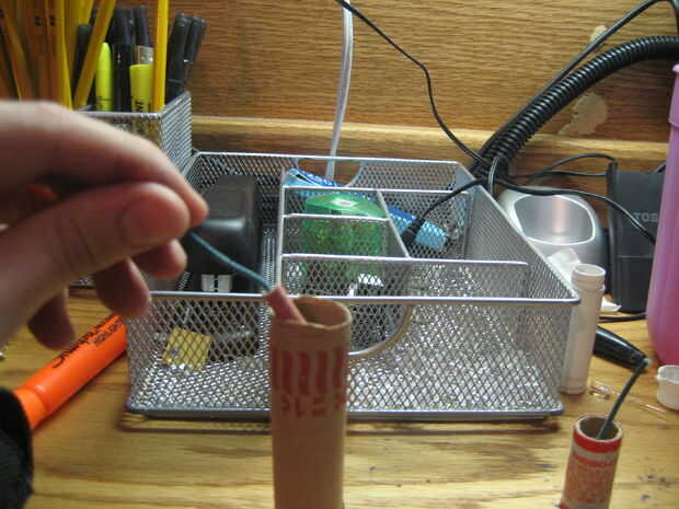 ahora toma el firecraker guardaste y asegúrese de que usted ponga ambos profundamente en el polvo pero asegúrese de que la mecha esté lo suficientemente larga para colgar fuera del titular de la moneda