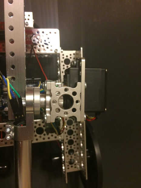 - Tomar uno 5/8 diámetro de abrazadera de tubo y Monte en el primer agujero en el lado izquierdo del bot. Asegure con 4 tornillos de la parte inferior del canal.