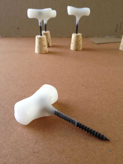 Fundir el termoplástico en agua durante 3 minutos. Sacar el plástico con una cuchara. Rápidamente meter el tornillo por el termoplástico y "mush" el plástico en la parte superior de un tornillo de la manija de la forma. Si el plástico se endurezca antes de encontrar la forma de la manija que te gusta, simplemente plop el Guty entero en el agua hervida por 3 minutos y remodelar.