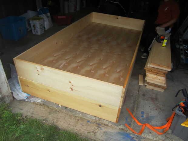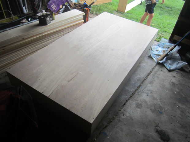 Mover fuera del camino. Establecer el marco de otro en el suelo. A continuación, establecer el primer fotograma y lauan en la parte superior. Vas a atornillar el lauan y en el segundo cuadro.