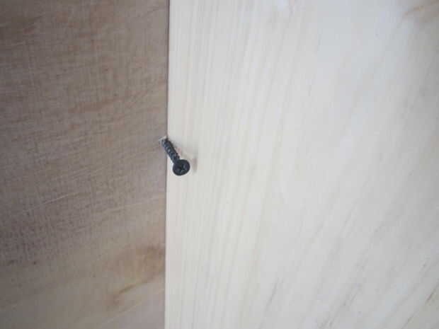 Cuando lo tienes cuadrado, poner un tornillo por el lauan en una esquina. Luego, pones uno en la esquina opuesta. Si aquellos están alineados, todo lo demás debe ser. Puse cuatro tornillos en los lados y cuatro en la parte superior e inferior.