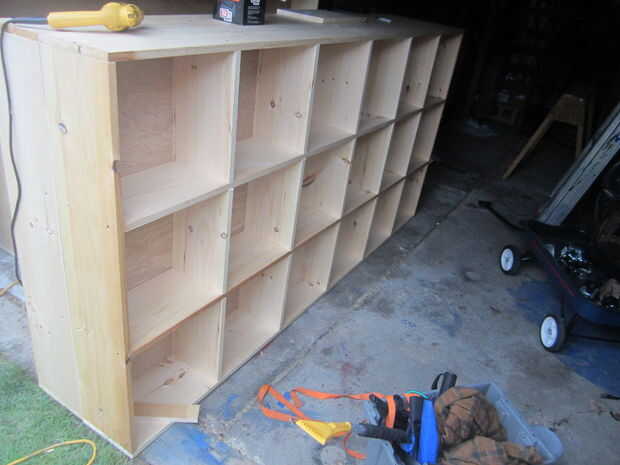 Los separadores son un número de tablas pequeñas, todo atornillados en su lugar. Sus estantes deben tener 15" entre cada uno, de corte fácil, aburrido. Todavía, usted querrá comprobar cada fila antes de asumir y corte.