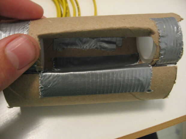Reforzar todo con un montón de cinta adhesiva, luego asegúrese de que el muelle se encuentra en su propio y todavía se ajusta el iPod.