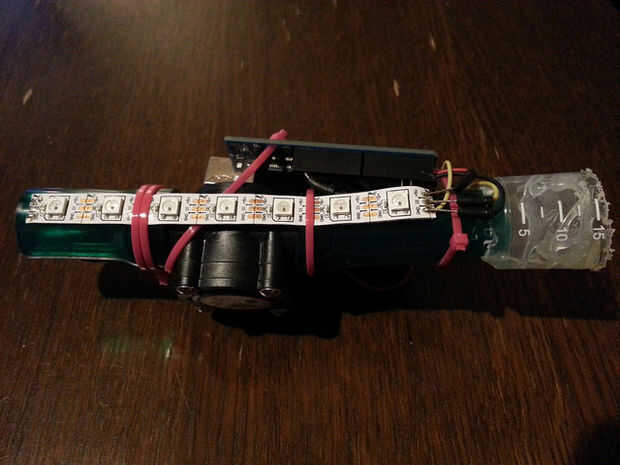 Utilizar abrazaderas de plástico para sujetar la tira de Neopixel a la Asamblea anterior.