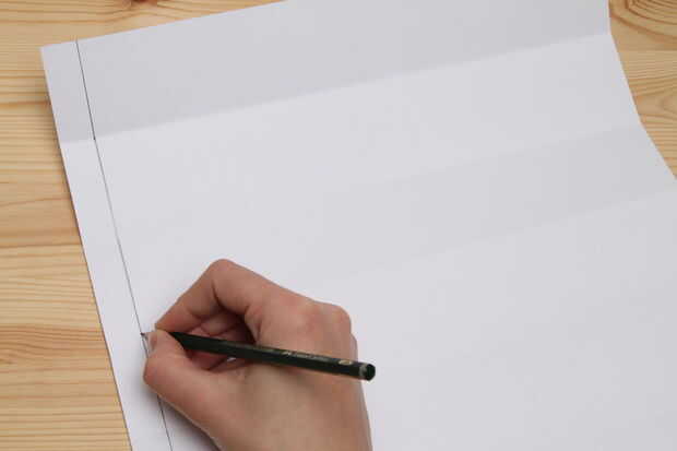 Preparar una plantilla para hacer los agujeros utilizando un papel del mismo tamaño de tu libro. Marca 1.8cm lejos del borde de la columna vertebral. Esta distancia es flexible, pero debe asegurarse de que el enlace no interfiera con la tapa.