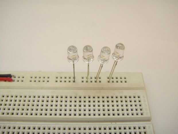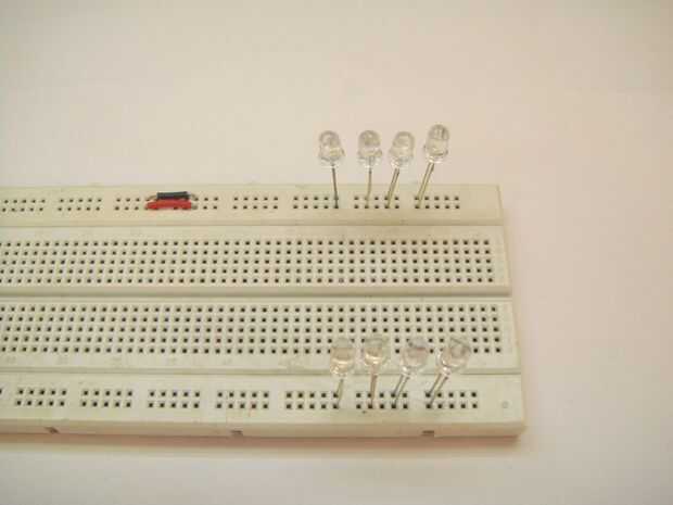 Un solo led puede ser resplandor fácilmente con un linkit un tablero. Pero varios led o no brillo y si ellos brillará entonces muy dimply. Así que tenemos que hacer una fila de leds para comprobar si somos capaces de brillar esa fila brillantes logrando así nuestro propósito. Elegí los carriles dos potencia de la placa para conectar leds. Los leds del primer riel se conectará a la junta con TIP31C y rieles segundo directamente a la Junta. Poner por lo menos cuatro leds en cada carriles de la placa y proceder al siguiente paso.