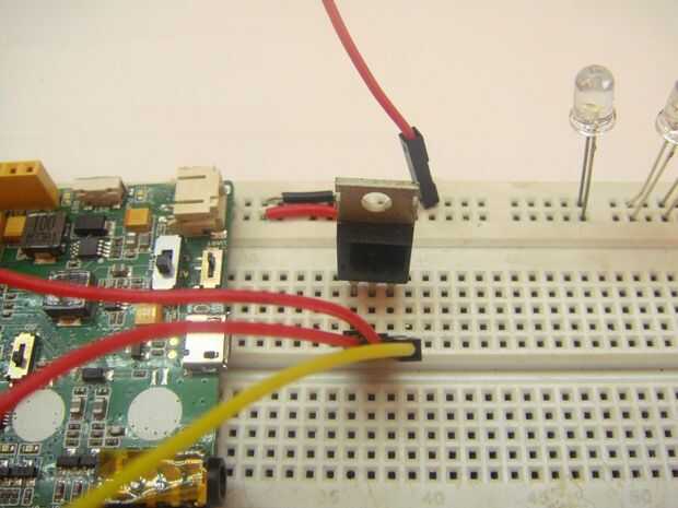 Tip31C es un transistor NPN básico. Se utiliza aquí para cambiar la corriente de la fuente de alimentación principal con la corriente de la likit un pin digital. Asegúrese de que cambia corriente no de voltaje. Corriente y volatage son cosas diferentes. Usted puede encontrar este transistor muy fácilmente en el mercado. Para conectarlo a la placa, haga lo siguiente: