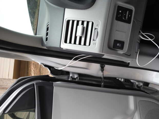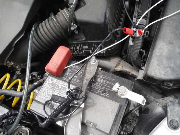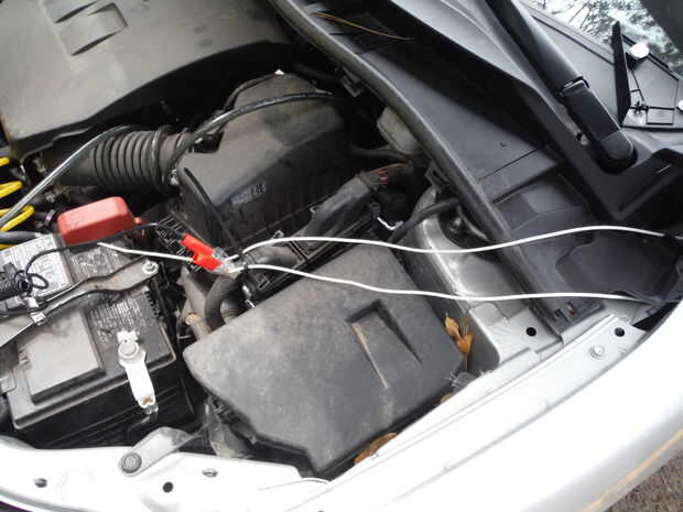No conecte la pinza negativa hasta que terminó conectando los cables, tira de los extremos de los cables eléctricos, apriete la terminal positiva, pase ese extremo a la parte frontal del coche hacia el asiento del conductor, conecte al interruptor del empuje y aislar con cinta aislante ideal, otra cinta funciona muy bien, conectar la otra línea que va a la abrazadera del adaptador (rojo) de 12V , No se olvide de poner la abrazadera cerca de algún plástico para aislar de cortocircuitos y asegúrelo con zipties según sea necesario,