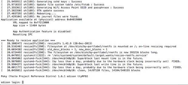 -También puede acceder a través de terminal de serie para el Edison y ver el proceso de flasheo (por pantalla /dev/cu.usbserial [TAB] 115200 - L).