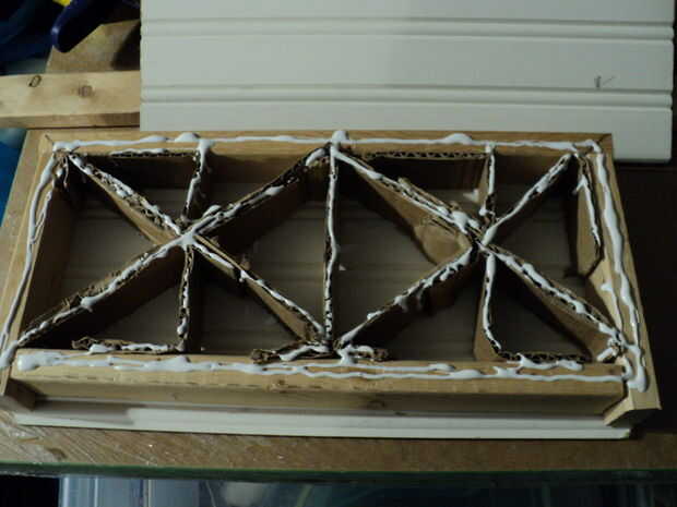 Con el pegamento aplicado a todos los bordes expuestos de su marco interno y alrededor del borde, mate el final frontal en su lugar.