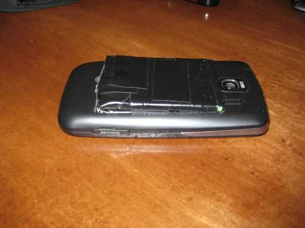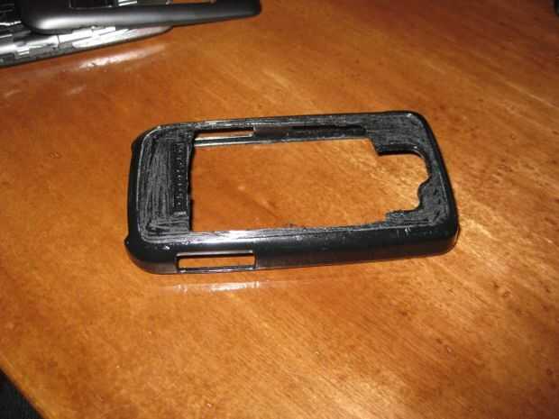 Ahora con cinta todo y lo pones de nuevo en el teléfono de forma segura y asegúrese de no hay los potenciales cortocircuitos. Entonces para acomodar para la segunda batería que cortar toda la parte posterior de su teléfono y caso. Asegúrese de pulir los bordes.