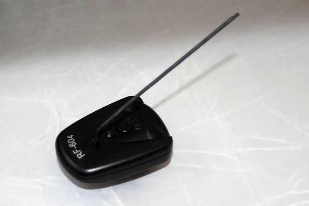La foto muestra la vista final y nota que el hilo está ahora cubierto de tubo termo retráctil. Elegí un diámetro apropiado para cubrir el alambre y sellar el borde, pero esto no es necesario en general - sólo quería un poco de protección y que el hilo negro, como es el caso. En este transmisor, también dobló la antena en un ángulo un poco para reducir la altura total de la cámara, que no parece afectar la operación mucho (hace un poco, estoy seguro).