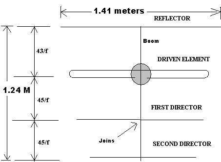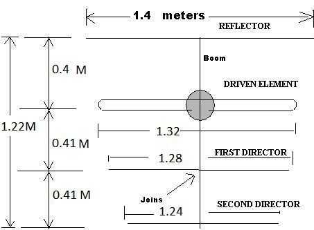 El elemento central es el dipolo de media onda, plegado simple. Se denomina el 'elemento conducido' porque es sólo el elemento que está directamente conectado con el transmisor de FM, conduciendo la antena entera. Los otros tres elementos externos se llaman elementos parásitos. Uno se llama los elementos de director. El reflector refleja la energía de RF y el director dirige la energía de RF. Por lo general, el elemento reflector es 5% más que el elemento conducido y el director es 5% más corto que el elemento conducido.
