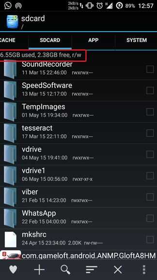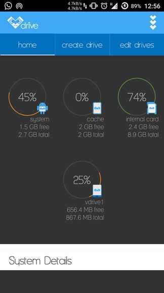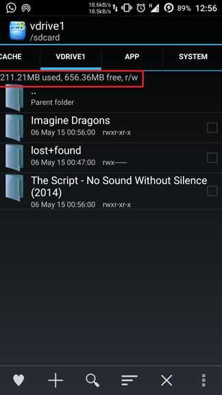 Ahora tienes una unidad virtual que almacena los datos en la partición de sistema o caché en lugar de sdcard. De esta manera puede almacenar más datos que antes.