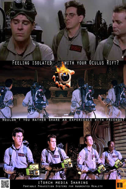 El diseño iTorch fue creado y construido por Travis Higgins para un proyecto final en los nuevos medios de la Universidad de Maine. En desarrollo de la realidad virtual compartido experiencias (compartida de la realidad aumentada). El iTorch fue diseñado para ser un sistema de proyección portátil e inalámbrico que permitiría a un usuario proyecto libremente sus medios de comunicación (o de datos aumentados) que quieran de ellos.
