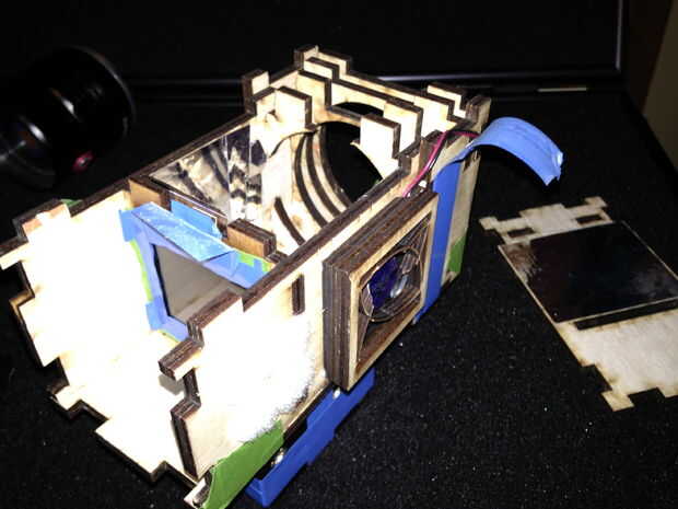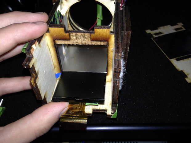 (Si no está familiarizado con la cámara oscura puede ser confuso por qué tenemos que hacer todo esto. Con proyección, la imagen es volteada e invertida, así que tenemos que hacer lo mismo con la pantalla LCD para darnos una imagen normal.)