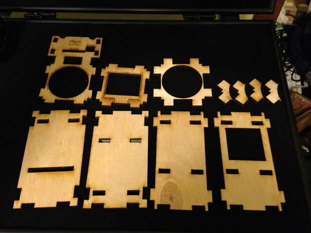 Tarda una hora para cortar la madera en un kit en el cortador del laser. Yo uso un 4' x 2' pieza de abedul que corté hasta 24 "x 18" para caber la cama láser. Es $10 por hoja en Home Depot y cuesta $10/ hr para usar el cortador del laser.
