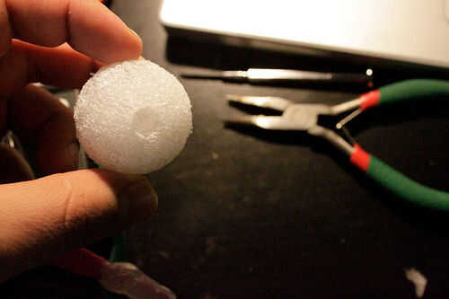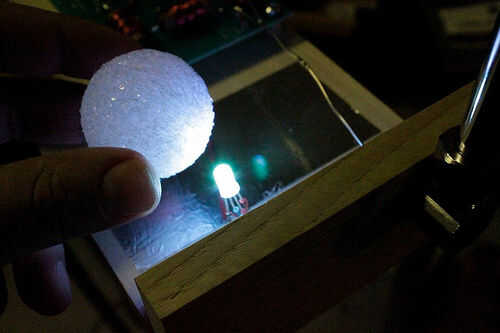 Otro truco interesante me gustaria hacer es utilizar esferas de espuma de poliestireno para difundir los LEDs. Pueden conseguir absolutamente brillantes, y las bolas de crean un objeto grande agradable.