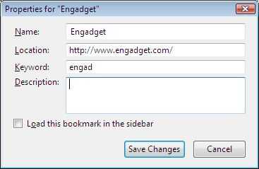 Al agregar un favorito, es tan simple como escribir la palabra clave en la sección de "Palabra clave" de la ventana. Aquí, he utilizado "engad".