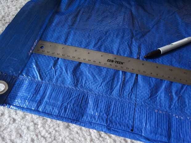 Alinee el borde superior de 1 lona rectángulo con la parte superior une el borde de la aleta de la puerta. Presione y se adhieren los dos juntos. Permitir suficiente tiempo de secado antes de molestar a las aletas de la puerta otra vez.