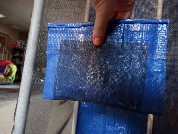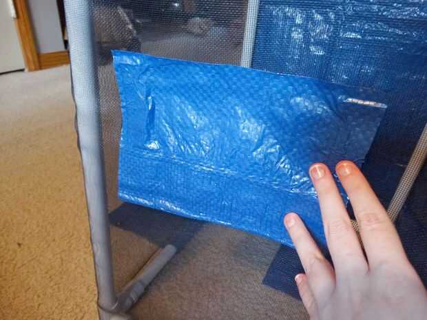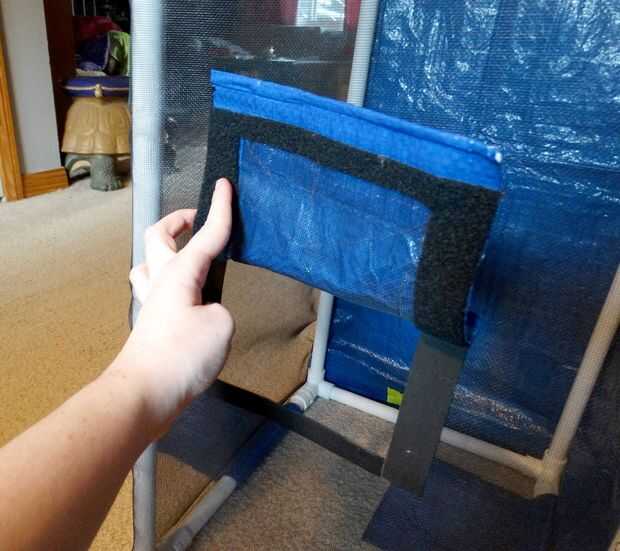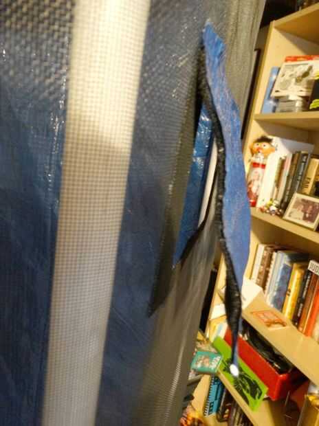 Presione la puerta de lona en la parte superior este velcro y deje que se seque. Me volví a la casa de la polilla en su lado a incluso, plano de secado del adhesivo.