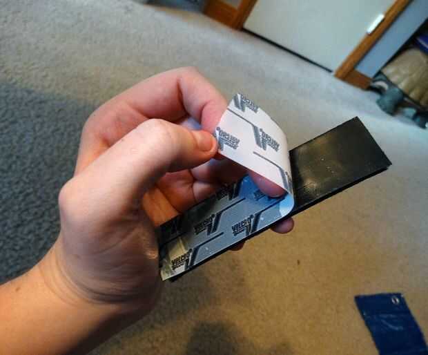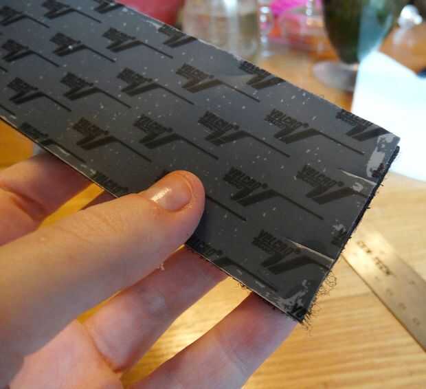 Cuando la primera ronda de velcro está seca, se puede eliminar el respaldo o aplicar adhesivo a las espaldas de velcro restante.