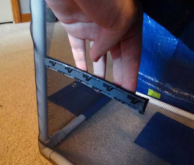 Mantener tus piezas de velcro intercalados como colocar las piezas de velcro a la pantalla alrededor de cada marco de la puerta. Esto asegurará que su mitad de velcro está adecuadamente alineados a unos de otros al final.
