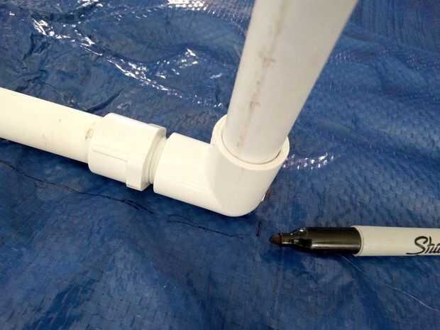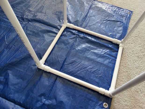 Ahora, dejando la pantalla cubrió en su lugar, pare el marco con el borde del tubo tocando al borde superior del trazo de su lona de. Ver foto 4.