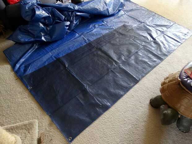 Difundir su lona de tiempo prueba fuera plana en el suelo.
