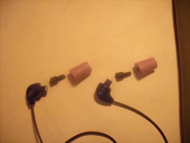 pobres mans reducción de ruido auriculares. Muchas ventajas sobre Bose ($200-$300): más baratos (peniques en el dólar) y más pequeño, permite movilidad, ningunas baterías requeridas. Los ruido (JVC) audífonos, uso de Flents (u otros fabricantes) esponjoso tipo tapones para los oídos en lugar de la toma JVC. Si tienes termo-retráctil, puede substituir y alargar el tubo JVC para permitir insertar el enchufe de Flent mejor en su oído. Ideal para aviones, autobuses/autocares, césped, fuerte trabajo medio ambiente, etc.. Reproductor de mp3 sólo requiere volumen 1/2 con estos - extendiendo así la vida de la batería. Ver también - mi corta 'Video instructivo' para lo mismo.