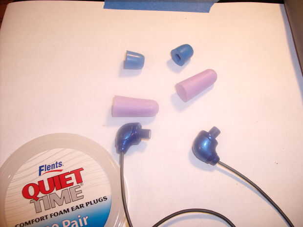pobres mans-auriculares de aislamiento de ruido. Muchas ventajas sobre Bose ($200-$300): más baratos (peniques en el dólar) y más pequeño, permite movilidad, ningunas baterías requeridas. Los ruido (JVC) audífonos, uso de Flents (u otros fabricantes)