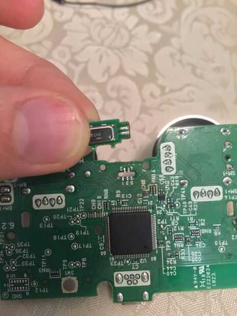 Hay un resonador de cuarzo sobresale derecho de controlador Motherboard, Tarjeta madre en el espacio donde será la salida de auriculares. Tendríamos que trasladar! Es bastante fácil, incluso más fácil si tiene ventilador y pinzas de soldadura.