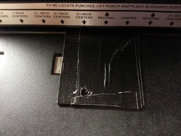 Si usted está usando un sacador de agujero, perfore dos orificios en el borde superior de la corta de la tarjeta (o si lo prefiere, puede utilizar un cuchillo X-acto). Asegúrese de que son aproximadamente la misma distancia desde el borde de la tarjeta. En el extremo opuesto, perforar un agujero un poco fuera del centro.