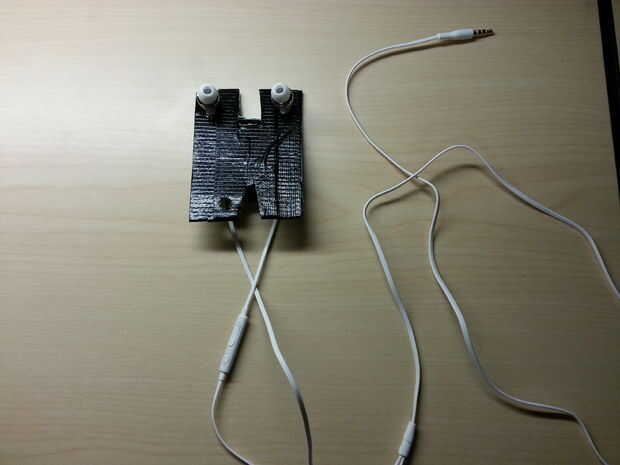 1. Inserte los auriculares en los dos agujeros superiores de la tarjeta.