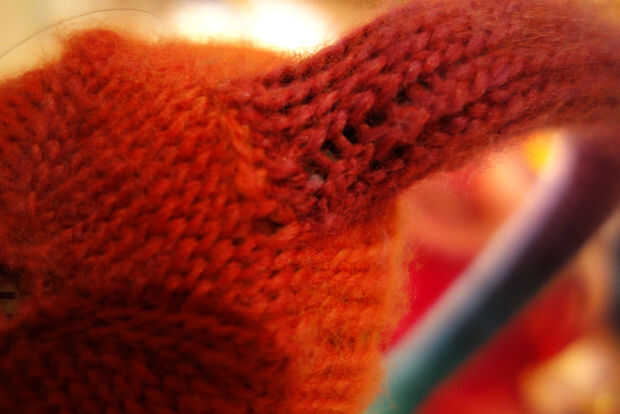 En la siguiente fila del molde en el mismo número de puntadas por encima de donde ha desechado, y después del lugar de la puntada final la banda de auriculares en el espacio que ha creado y continuar hacer punto. Usted se va ahora tejer alrededor de la diadema.