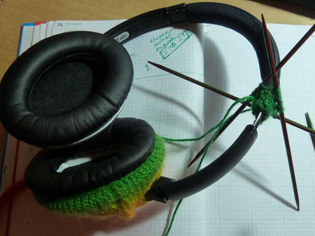 Yo literalmente punto alrededor de la diadema con circulares de 5 agujas. Para ello lanzar 12 punto como en el paso 1 y distribuidas entre las 4 agujas. Luego utilicé la aguja 5 para cerrar el círculo * alrededor * la diadema. Esto es un poco complicado, y lo que tengo redondo se fue para siempre de punto en el frente mediante el ajuste de las puntadas cada vez que realiza una ronda para que estés siempre tejer en la parte delantera de su cabeza.