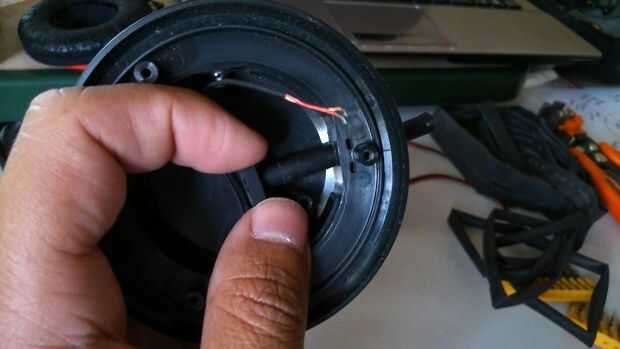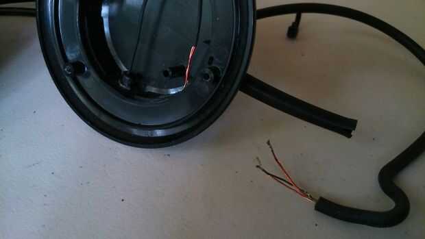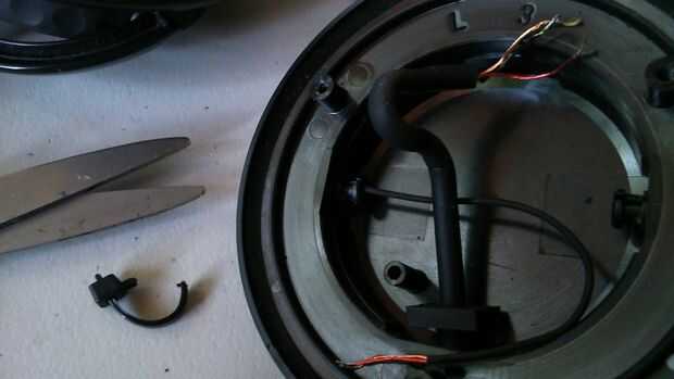 Esto debería ser fácil. El montaje original de los auriculares hace uso de un lazo de plástico para evitar que el cable se tira lejos del altavoz. Cortar con un cortador de cable - utilizar tijeras.