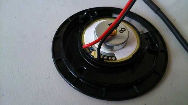Después de comprobar mi esquema (no quería tener que desoldar y rehacer el trabajo), soldado dos trozos de cable para el altavoz. Presté especial atención a los cables positivos y negativos.