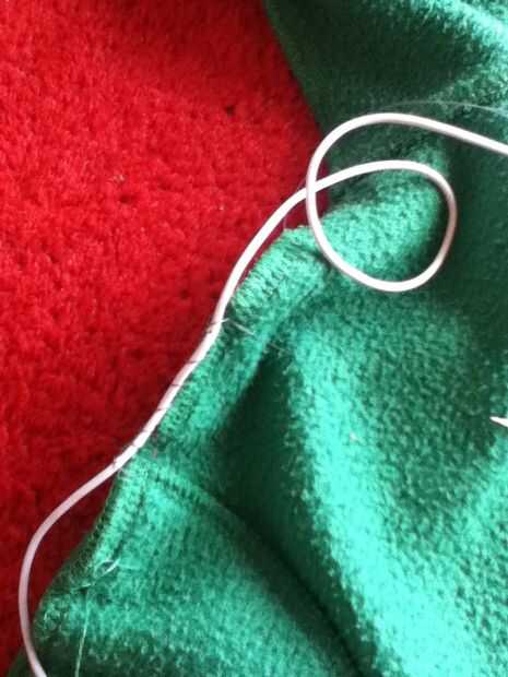 Primera vez con capucha interior hacia fuera dejar una pequeña longitud en la parte superior del bolsillo la costura de inicio en el sem de vez de pone la aguja a través de la tapa de plástico del cordón para fijarlo abajo al llegar a la manga justa hacia el sem y keep goin fue u obtener a lo medio círculo bajo el lazo de campana (como showen en última foto) de la cadena