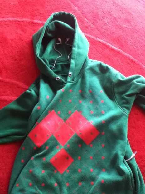 convertir instantáneamente cualquier con capucha suéter o chaqueta en una improvisada bolsa para llevar tus cosas. sin costura o corte sea necesitada!Paso 1: Seleccione su suéter puede ser un Jersey o un zip; bolsillos y cordones son bonito pero no e