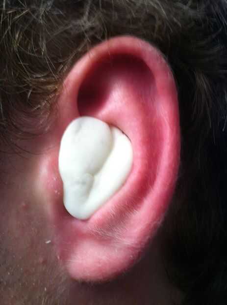 y Coloque suavemente en su oído intenta aplanar en las grietas pequeñas alrededor de su conducto auditivo