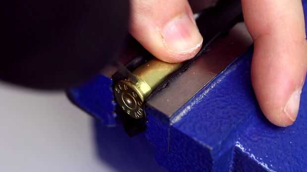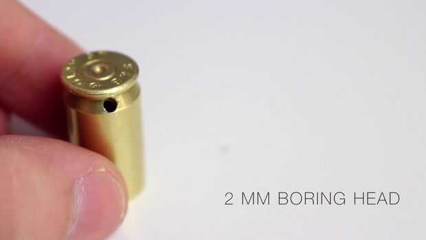 2 calibre.45 ACP cartucho casos de uso y un taladro (broca de 2mm) diagonalmente entre el borde de abajo.