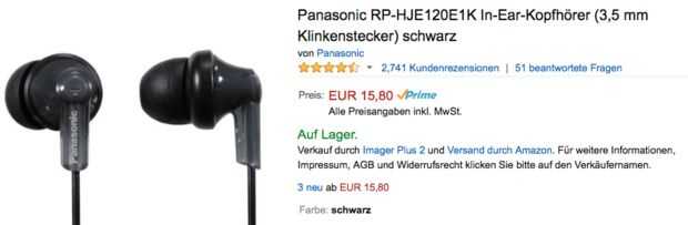 El número de modelo exacto es Panasonic RP-HJE120E1R. Estos auriculares son bastante asequibles y tienen muy buen sonido (literalmente miles de comentarios positivos amazon).