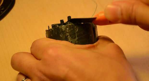 Cáscara de la almohadilla suave de la parte inferior para exponer los tornillos. Destornille los tres tornillos y retire la cubierta inferior. Salvo los dos botones unido a la cubierta. Desenrosque los dos tornillos que sujetan el módulo Bluetooth y la batería. Desoldar los cables. Había reutilizado el tornillo montajes/tallos que están en el altavoz de la vivienda. Para quitarlas, me calienta un cuchillo con un mechero y había rebanado lejos abajo como pude. * Guardar para más adelante.