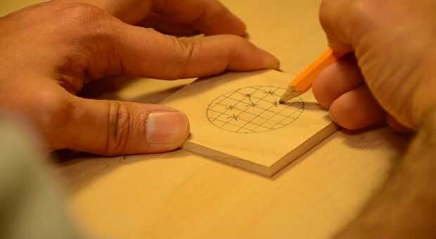 En una de las plazas delgadas, coloque un altavoz en el centro y traza alrededor de él con un lápiz. Obtener un borde recto y dibujar líneas verticales espaciadas uniformemente en el círculo, luego haga lo mismo con líneas horizontales.